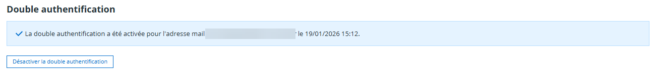 Une fois cette étape réalisée, vous pourrez activer la double authentification afin de renforcer la sécurité de votre compte.
