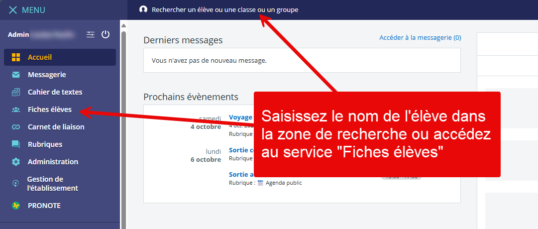 ATTENTION : si le service "Fiches élèves" n'est pas accessible par l'administrateur ou si un message d'erreur apparaît (type 403), il faut donner les droits au compte admin :